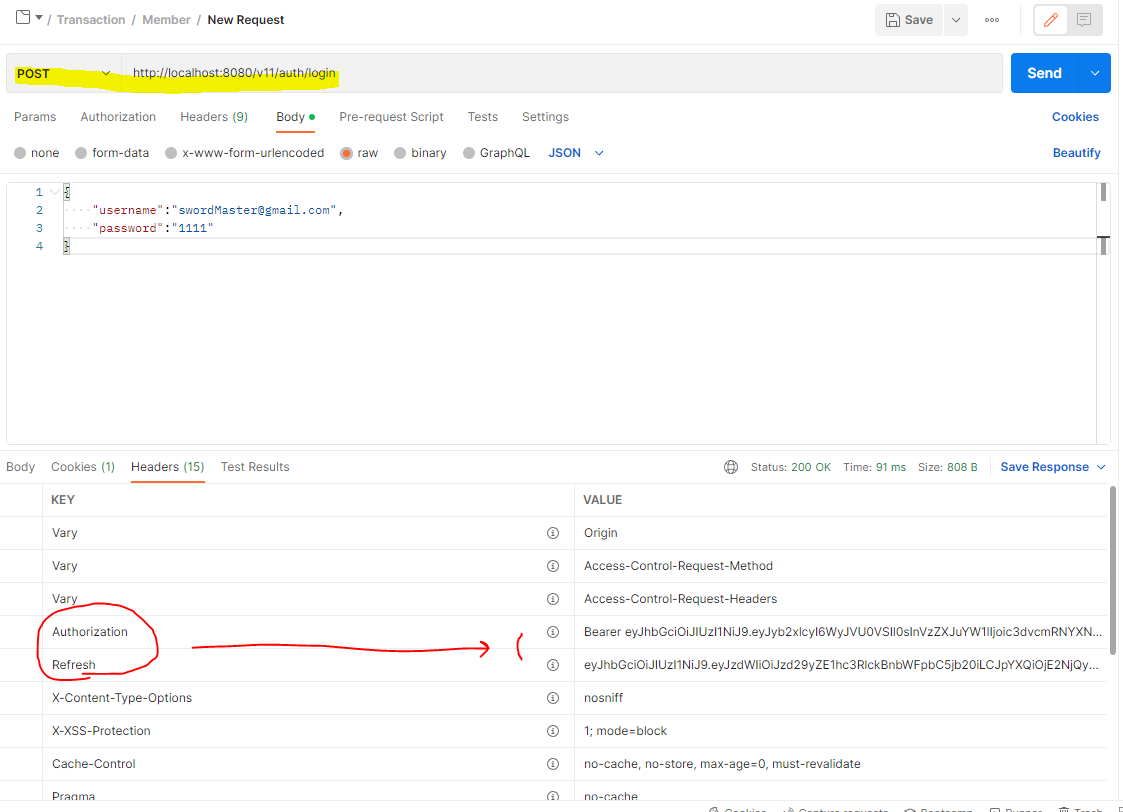 SpringSecurity를 이용한 JWT인증 애플리케이션 작성 후, Postman을 이용해 로그인 인증 요청을 보낼 때 올바른 요청이 오지 않는다. (이미지 참고)