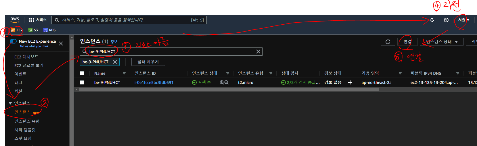 이때, 본인의 리전을 정확하게 선택해야 인스턴스가 뜬다.