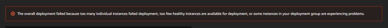 : The overall deployment failed because too many individual instances failed deployment, too few healthy instances are available for deployment, or some instances in your deployment group are experiencing problems.