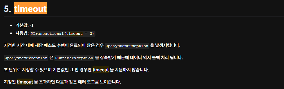 정확히는 jpasystemexception의 경우, RuntimeException을 상속하기 때문에, 지정 시간 안에 기능이 수행되지 않으면 롤백 후 던져지는 예외다.