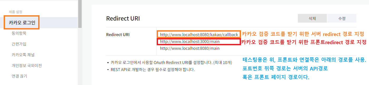 : 카카오 로그인에서 Redirect URI 등록해두기