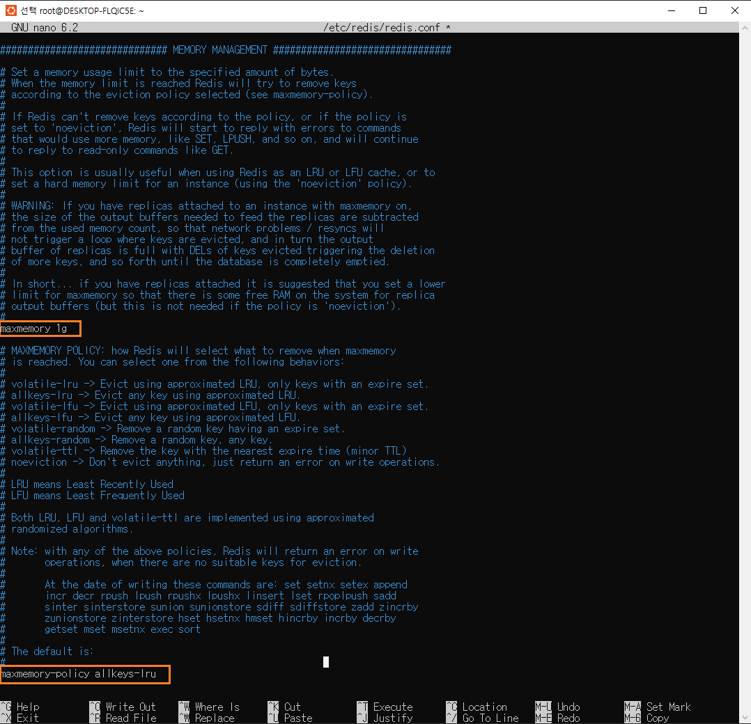 : 최대 사용 메모리량과 최대사용 메모리 초과할 시 가장 오래된 데이터를 지워서 메모리를 확보하는 전략 설정