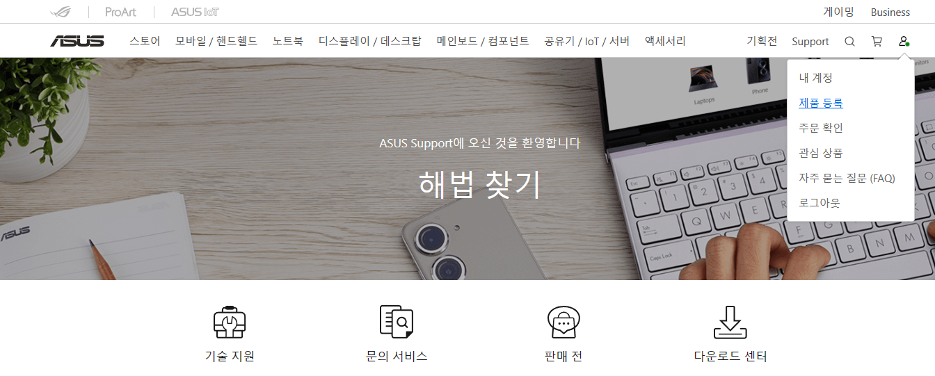: ASUS 지원 사이트에서 회원가입 / 제품 등록